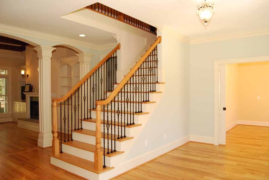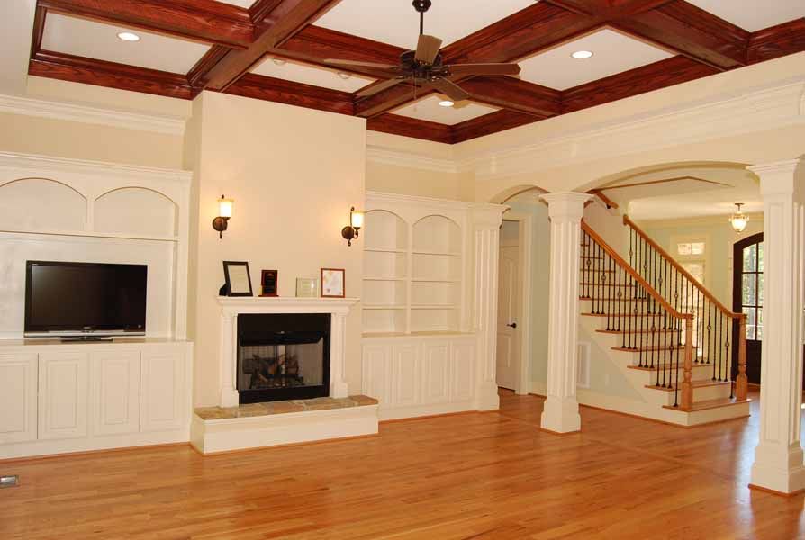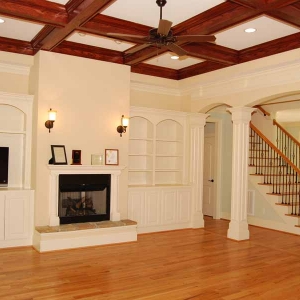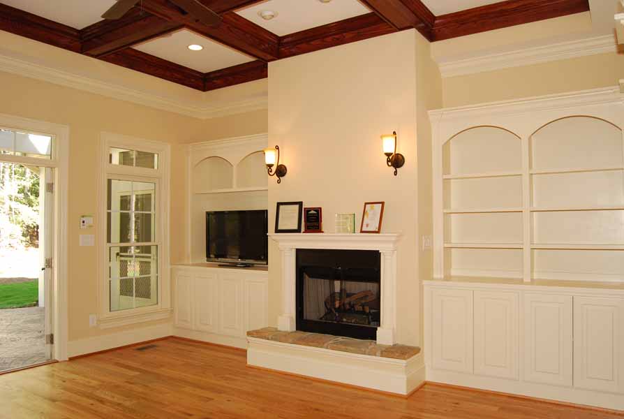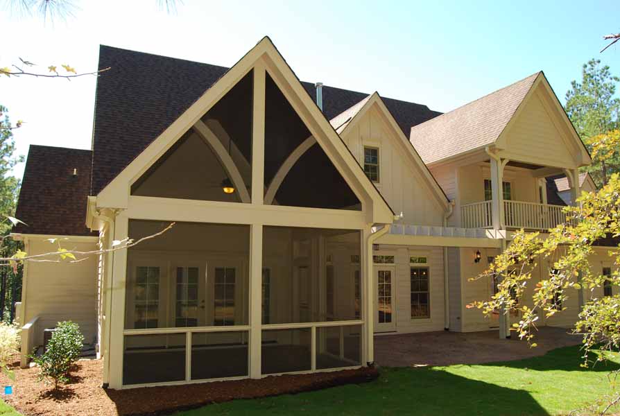 For the second year in a row, Absolute Construction and Development, LLC received a Parade of Homes Gold Medal for Chapel Ridge. This home was built in 6 months for just under $135/square foot including all fees – landscape, permits, engineering, plans, etc. Key features that can’t be seen include Energy Star certification, spray foam insulation, sealed crawl space and 2 tankless water heaters. Interior finish includes 4” plank red oak floors on the first floor, stairs and portion of second floor, central vac, security system, surround sound, built-in bookshelves, oak stained coffered ceiling, wrought iron railings and extensive trim upgrades. One of the most liked features was the entrance to the bonus room upstairs behind a door that looked like a bookcase when closed. It completed the end of the hallway perfectly and slid open to a large bonus room with hardwood floors and bathroom access. The upstairs bedroom has a beautiful balcony to overlook the wooded lot. The master bedroom and bathroom has custom designed closet with built-in drawers, free-standing tub and oversized tiled shower. The outdoor living area included stamped concrete patio with surround sound and screened porch with matching stamped concrete flooring, bead board vaulted ceiling with ceiling fan which can be accessed from the master bedroom. The house has a huge amount of walk-in storage space that maintains a comfortable temperature due to the spray foam insulation. The plans were designed by Residential Engineering Services.